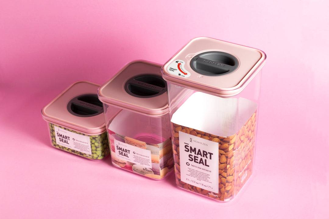 Now & Zen’s Pantry Containers with SMART SEAL Technology is a true kitchen storage innovation. The simple turnstile knob locks into place, creating an airtight seal to preserve kitchen and pantry items. These containers nest when not in use, stack when filled, and clean up in a cinch. Keep family-sized staples fresh and organized today.